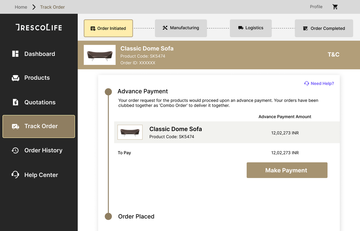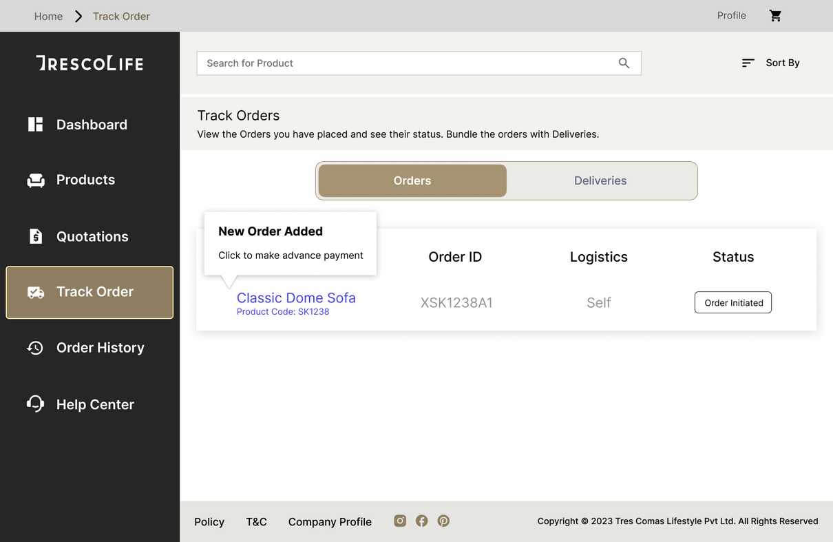 Track Order: Get directed to the track order section to view where the order is in the process.