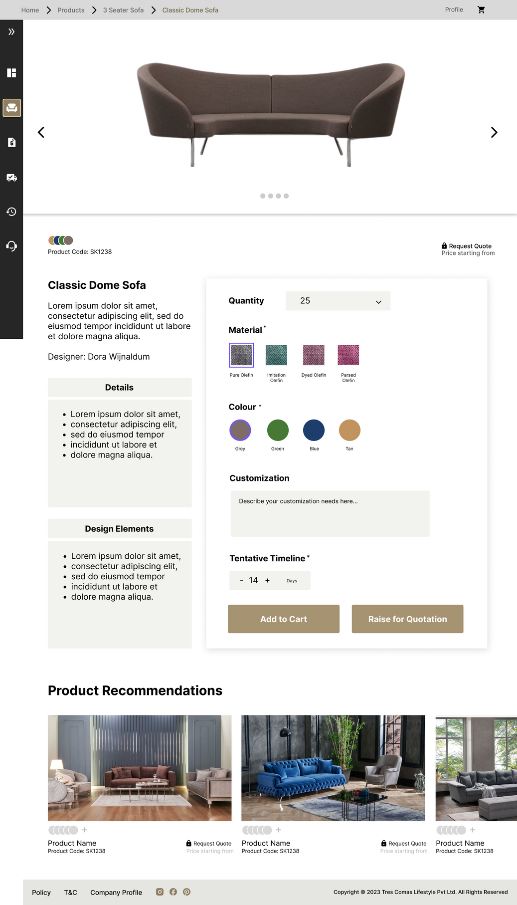 Raise for Quotation: Enter product requirements, needs and raise for quotation
