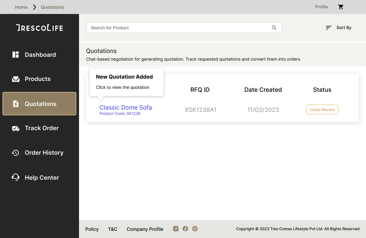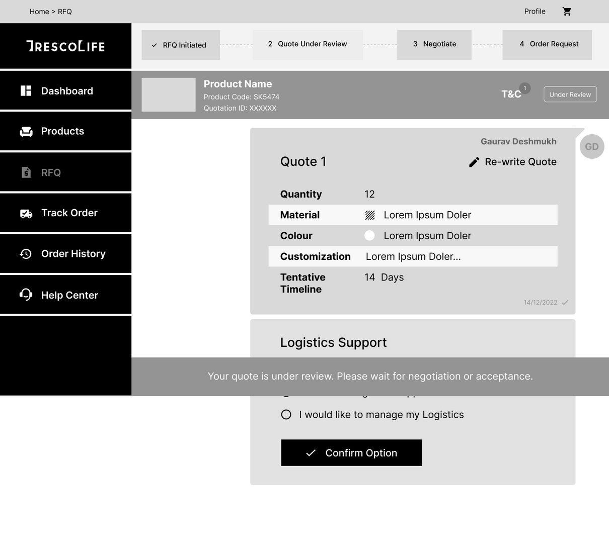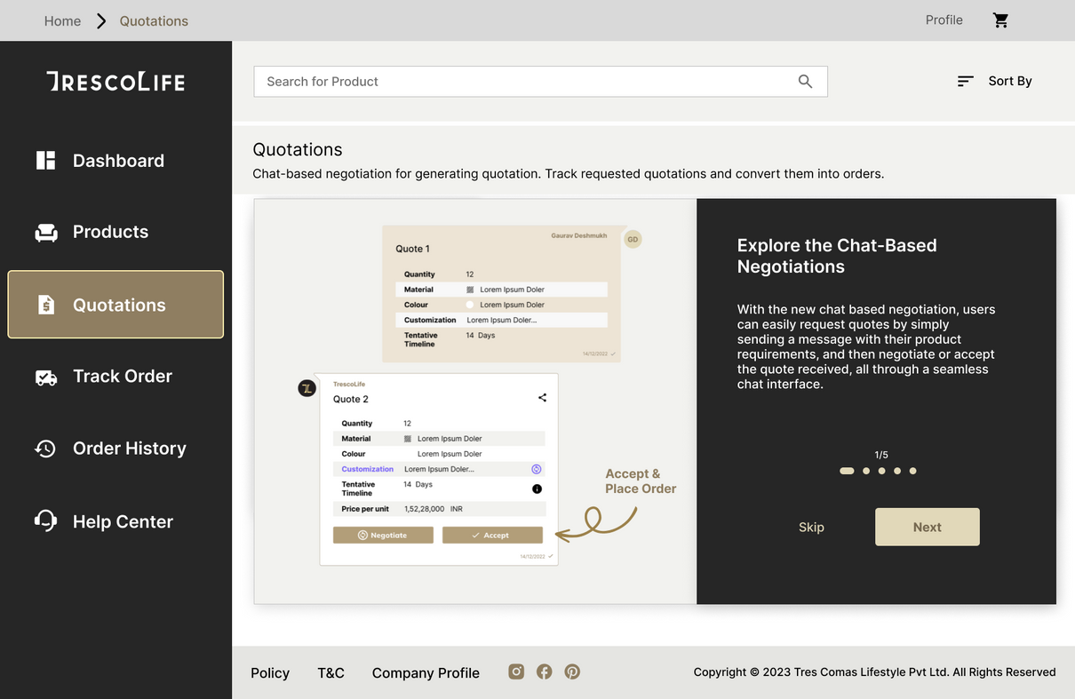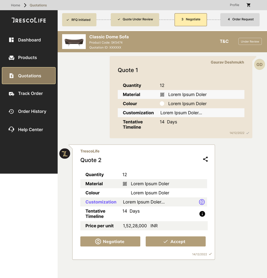 Negotiate or Accept: Negotiate or accept the quotation with a simple click.